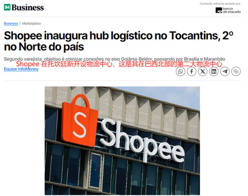 Shopee將在巴西北部開設新物流中心 圖源:Info Money