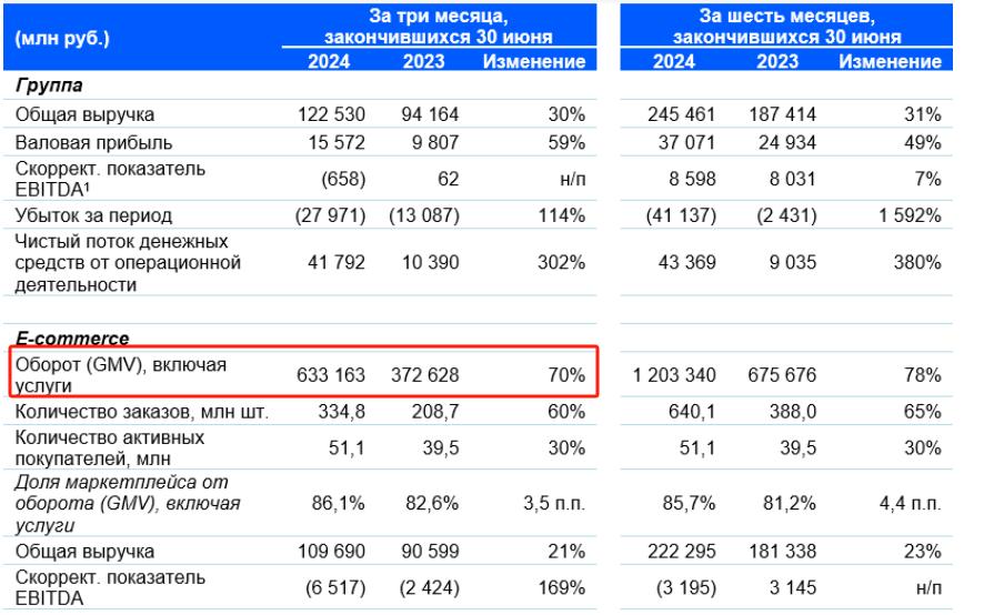 日前,Ozon公布了其2024年第二季度財(cái)務(wù)業(yè)績(jī)報(bào)告。數(shù)據(jù)顯示,今年二季度,其商品交易總額(GMV)達(dá)到了6332億盧布(約合74.5億美元),與去年同期相比實(shí)現(xiàn)了高達(dá)70%的顯著增長;電商收入為1097億盧布,同比增長21%。