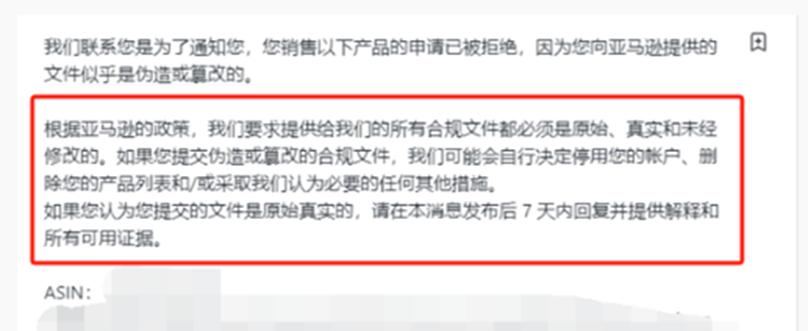 其實,不僅僅是CPSC,各大電商平臺也非常重視產品安全問題,近年來紛紛收緊了監管,對不注重合規問題的賣家重拳出擊。就在前段時間,一位亞馬遜賣家發帖稱自己的店鋪被平臺封禁了,理由如亞馬遜在郵件中所說:“您向亞馬遜提供的文件似乎是偽造或篡改的……我們可能會自行決定停用您的賬戶?!贝速N一出,不少賣家也紛紛表示自己的產品合規證書出了問題,因此被平臺封號了。