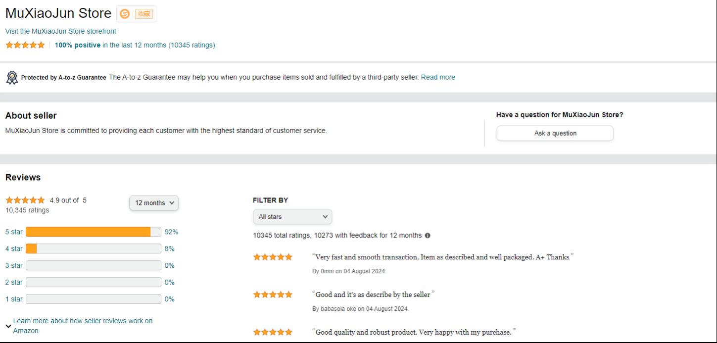 MuXiaoJun Store亞馬遜主頁信息 圖源:Amazon