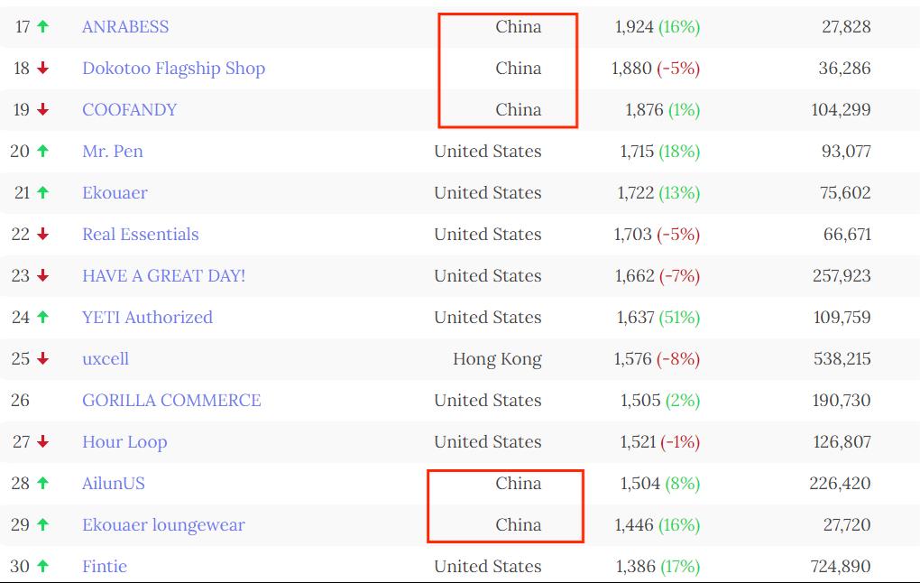 18位中國賣家上榜亞馬遜百強榜 圖源:Marketplace Pulse