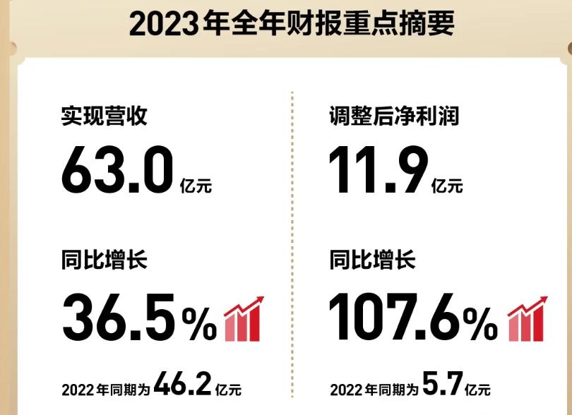 根據泡泡瑪特發布的2023年度業績單,數據顯示,2023年公司收入和利潤均創下了歷史新高,實現營收63億元,同比增長了36.5%;調整后凈利潤為11.9億元,同比增長107.6%。其中,港澳臺及海外收入達到了10.66%,同比暴漲134.9%,占總收入的16.9%。