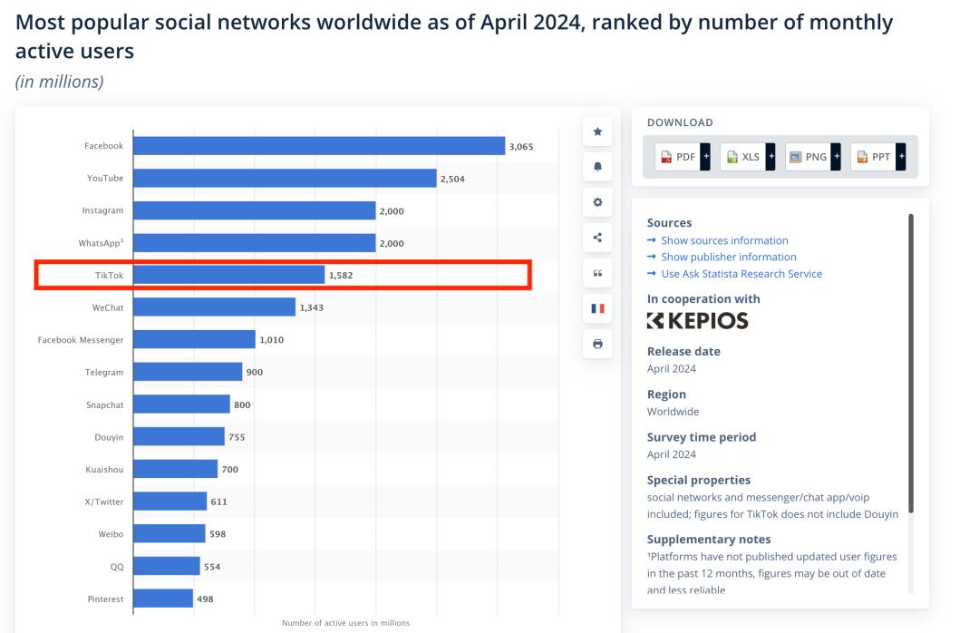 TikTok成全球第五大社交媒體平臺 圖源:Statista
