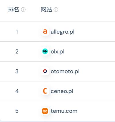 SimilarWeb提供的數據顯示,2024年7月份,allegro.pl是波蘭市場訪問量最高的電子商務和網絡購物網站,緊隨其后的分別是olx.pl、otomoto.pl和ceneo.pl,而拼多多Temu旗下購物網站temu.com則位列第五。