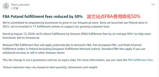 亞馬遜波蘭站點FBA費用下調50% 圖源:亞馬遜