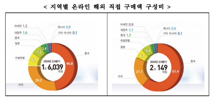 近日,韓國統計局發布最新韓國海外直購趨勢報告,數據顯示,2024年第二季度,韓國消費者海外直購總額超2萬億韓元,其中61.4%都來自中國。這不僅標志著韓國海外直購規模首次突破2萬億韓元大關,同時也是中國商品交易額占比創下的歷史新高。