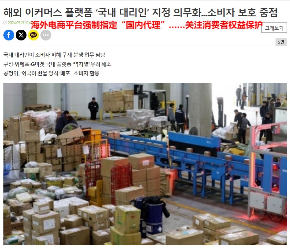 韓國政府要求海外電商平臺指定在韓代理商 圖源:kgnews.co.kr