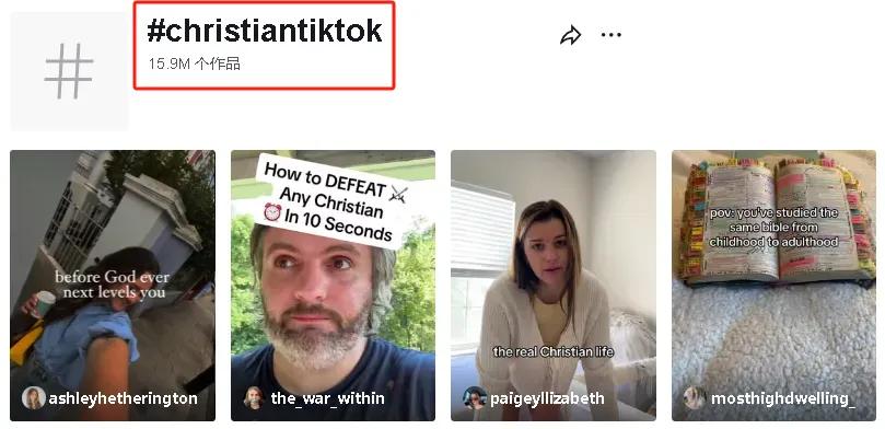 隨著近些年基督教在全球范圍內的影響力不斷提升,越來越多的人開始以TikTok作為社區交流媒介。在TikTok上搜索標簽“#christiantiktok”,共出現1590萬個產品,視頻類型包括經文祈禱打卡、信徒日常生活記錄等,用戶群體逐漸龐大。
