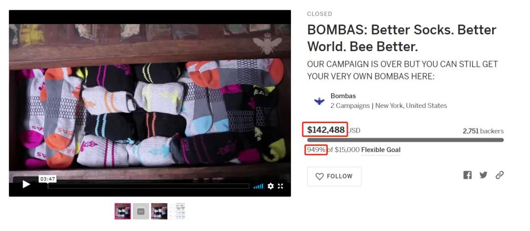 也因此,Bombas在短短24小時內就籌集到了2.5萬美元,最終共籌集14.24萬美元,以949%的目標達成率結合了這次活動。