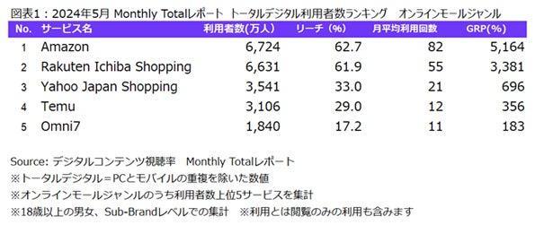 Temu去年7月在日本正式上線,根據(jù)Nielsen的最新調(diào)查,今年5月,Temu日本市場的月度活躍用戶數(shù)量達到3106萬,在日本各大電商平臺中排名第四。5月日本電商平臺在線用戶總量統(tǒng)計排名為:亞馬遜(6724萬)、樂天(6631萬)、雅虎購物(3541萬)、Temu(3106萬)、Omni7(1840萬)。
