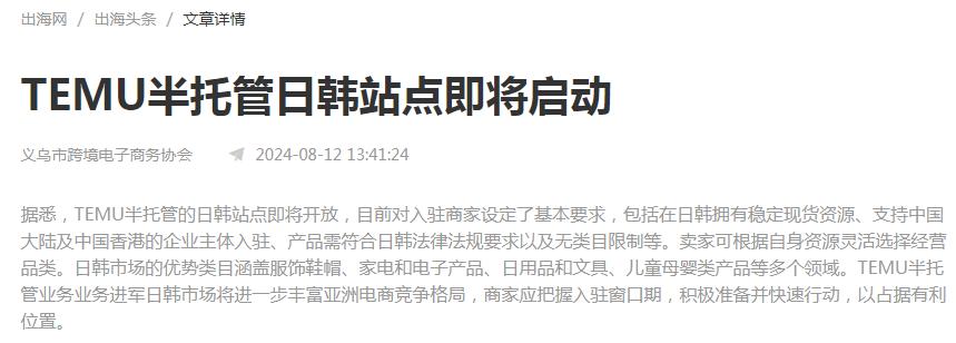 文章來源于互聯(lián)網(wǎng):Temu半托管即將開通日韓站點