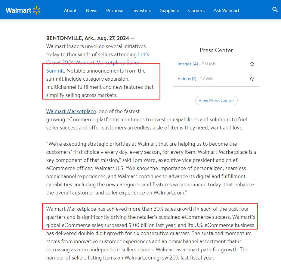 此外,為迎接即將到來的假日季,沃爾瑪根據賣家反饋推出一系列履行解決方案,包括將免除在9月30日之前將庫存送達WFS配送中心的賣家的旺季倉儲費。沃爾瑪還進一步擴大資本規模,為符合條件的賣家提供高達500萬美元的現金預付款。