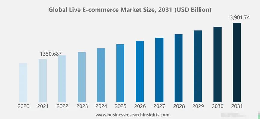 客觀來講,直播能夠在海外爆火并不是一件令人意外的事,據business research insights數據預測,在2031年,全球直播電商市場的規模將達到驚人的39017.4億美元。?顯然,這種“面對面”的模式可以很好激發消費者的購物熱情。