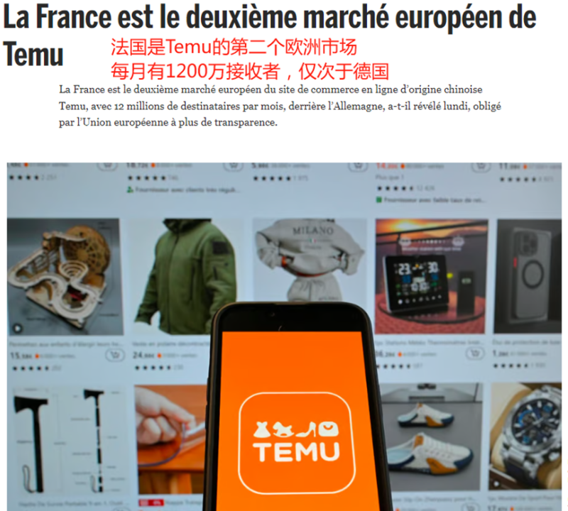 往南走來到法國,Temu的身影依然隨處可見。消息指出,目前法國已經成為Temu在歐洲的第二大市場,每月收貨人數高達1200萬,僅次于德國。