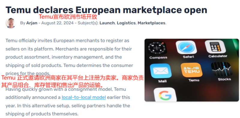 Temu邀請歐洲商家注冊賣家 圖源:Ecommerce News