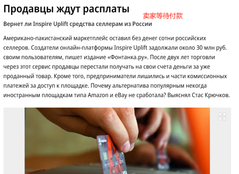 另外,賣家們還發現該平臺的兩位創始人Aaron Wallace和Yasin Rahman曾涉及美國法院的敲詐勒索案件,這讓賣家們相當焦心。據粗略估計,截至今年2月初,Inspire Uplift所拖欠的貨款約2500萬盧布。