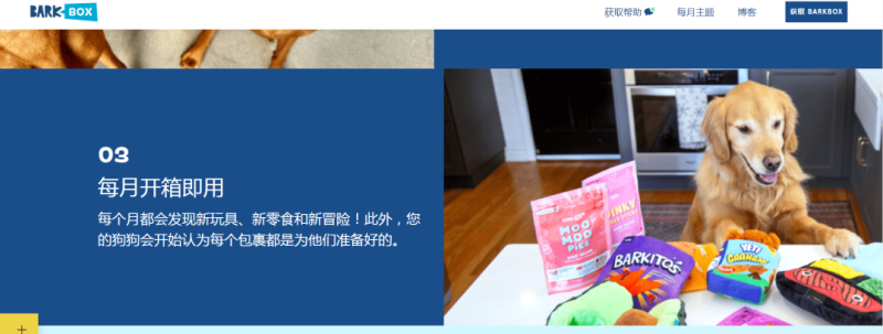 自2012年成立以來,BarkBox便一直專注于為養(yǎng)寵家庭提供一站式的盲盒服務(wù)。訂閱用戶每個(gè)月都會收到一個(gè)裝滿狗狗玩具、零食和保健品的大禮包,每件物品都是根據(jù)狗狗的喜好、品種、性格等個(gè)性化特點(diǎn)精心挑選的。這種“全包式”的懶人服務(wù),讓寵物主人無需再為挑選狗狗用品而煩惱,同時(shí)也為他們帶來了拆盲盒的驚喜感。