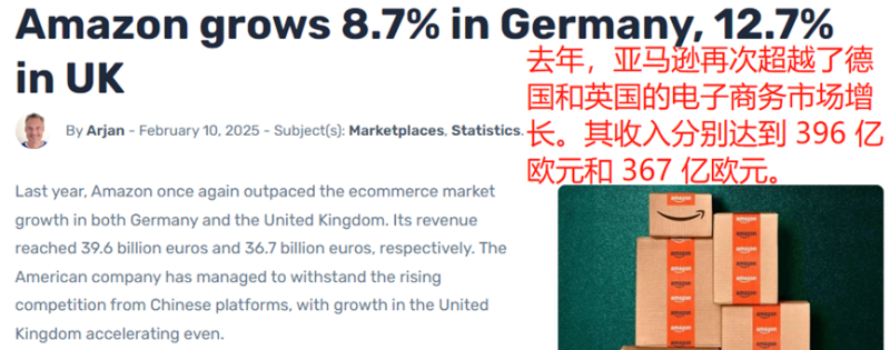 作為全球電商霸主,亞馬遜在德國市場自然也是取得了不俗的成績。