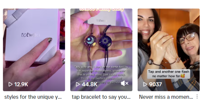 國內智能珠寶品牌Totwoo,走的便是這條路。Totwoo的王牌產品是一款情感連接手鏈,和傳統飾品不同,在智能科技的幫助下,只需輕輕一觸,另一方的手環就會震動并發光,能夠很好傳遞自己的情感。