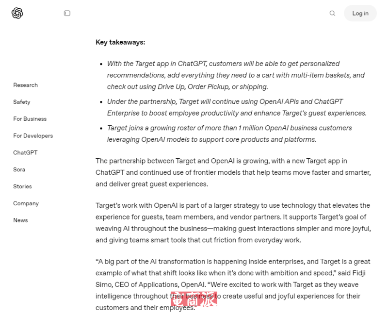 11月20日消息,Target近日宣布將與OpenAI合作,在ChatGPT推出全新購物應用,使消費者能夠在聊天界面中直接發現并購買商品。該應用將于感恩節前一周以測試版形式上線,旨在將AI技術融入假日購物場景,打造更具對話性和策劃感的購物體驗。