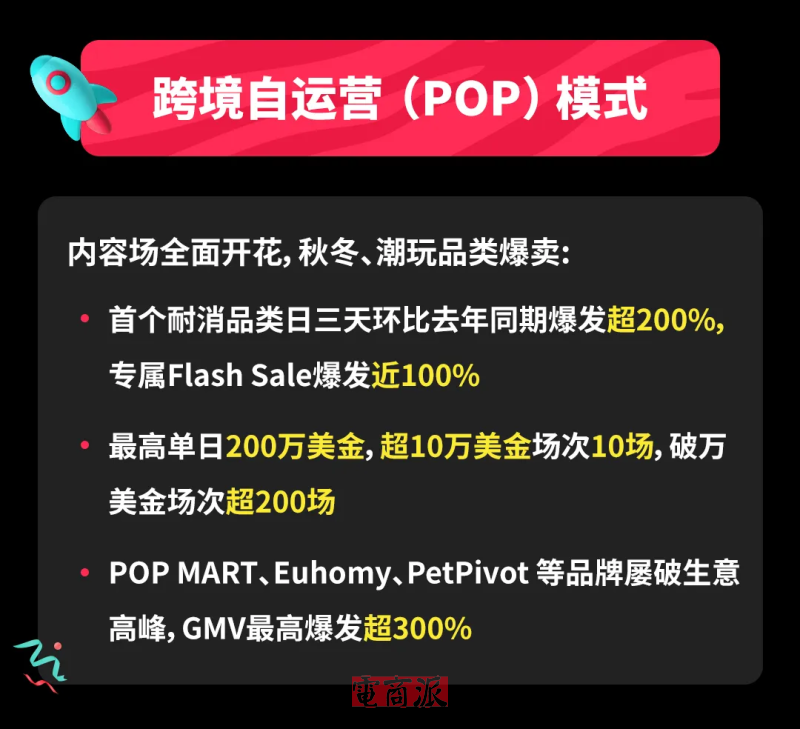 黑五首周,TikTok Shop美區(qū)跨境自運營(POP)內(nèi)容場全面開花,秋冬、潮玩品類爆賣:首個耐消品類日三天環(huán)比去年同期爆發(fā)超200%,專屬Flash Sale爆發(fā)近100%;單日銷售額最高200萬美元,銷售額超10萬美元場次10場,破萬美元場次超200場;POP MART、Euhomy、PetPivot等品牌屢破生意高峰,GMV最高爆發(fā)超300%。
