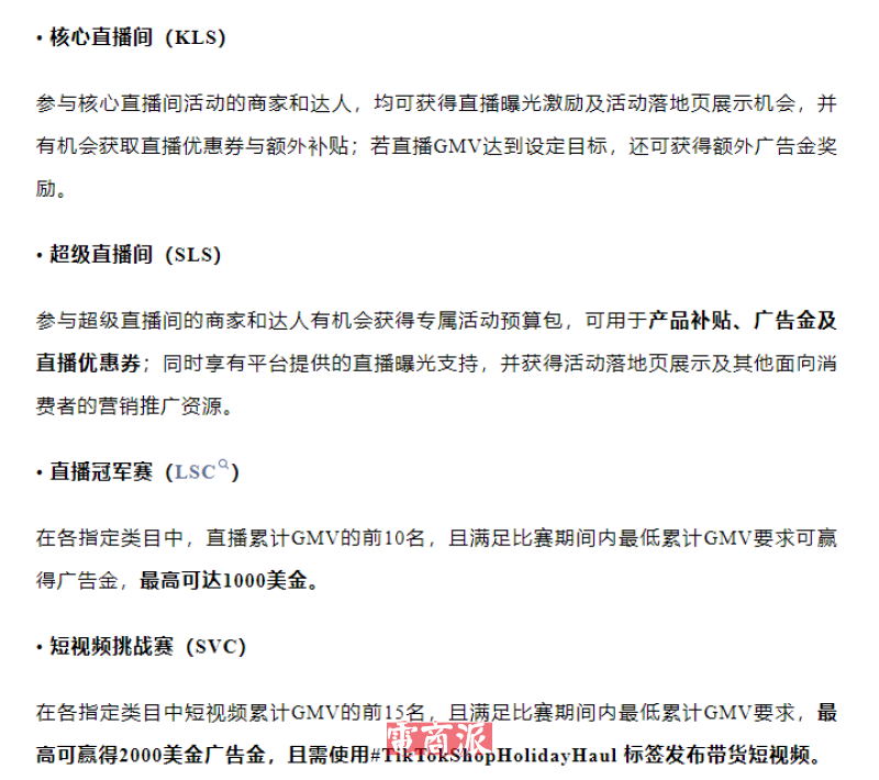 根據平臺公告,本次Holiday Haul針對跨境自運營(POP)與全托管兩種模式的商家推出了不同的活動玩法。
